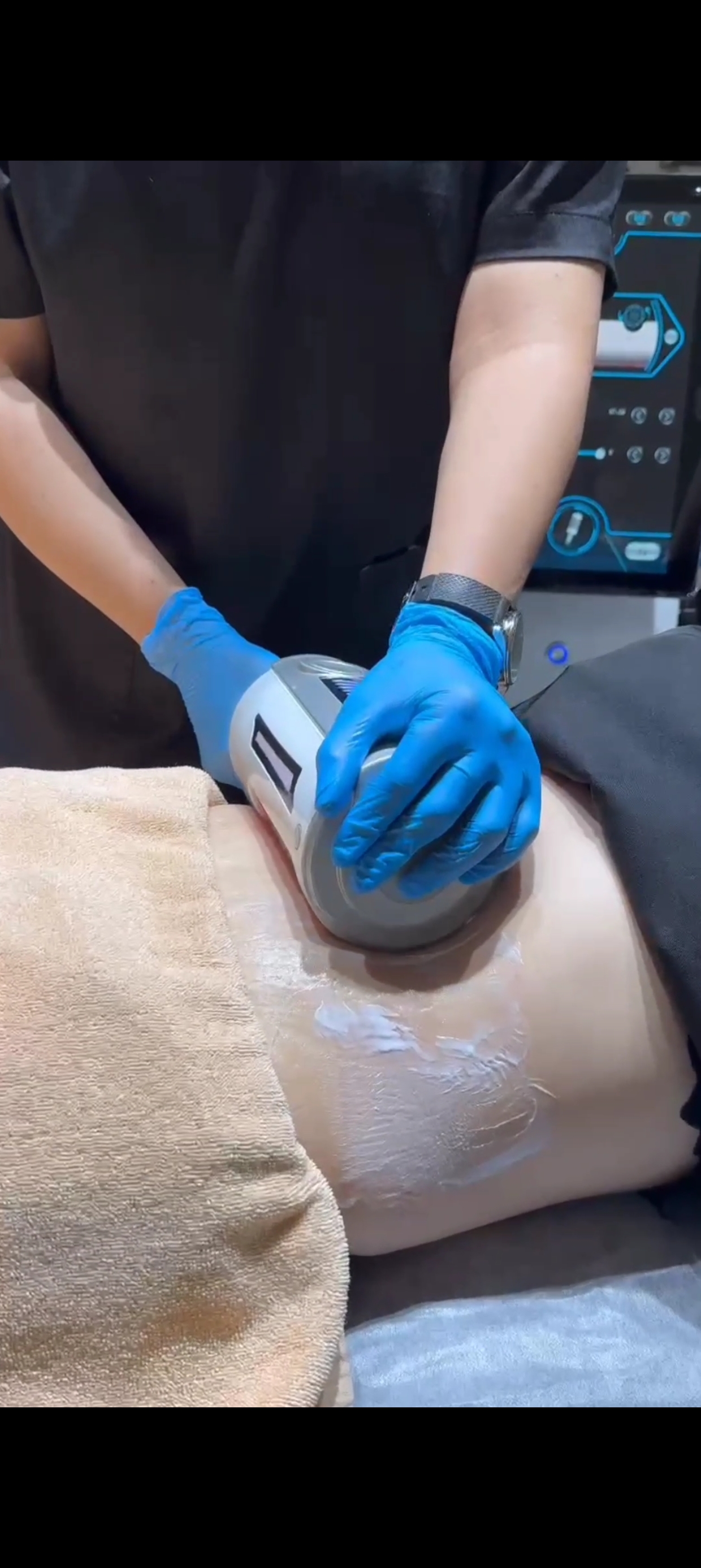 Advanced ultrasound treatment to tighten loose skin and reduce fat deposits in the upper arms.